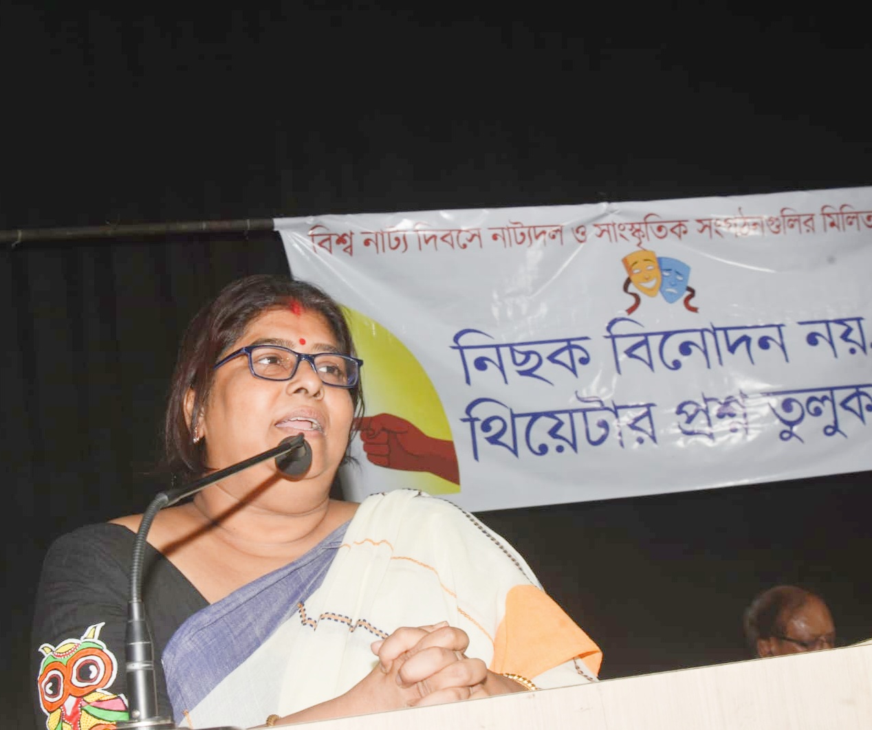 পদযাত্রায় অংশগ্রহণ করেন পবিত্র সরকার, পঙ্কজ মুন্সী, অসিত বসু,অরিন্দম চট্টোপাধ্যায়, রজত বন্দ্যোপাধ্যায়,তপতী ভট্টাচার্য প্রমুখ নাট্য ও সাংস্কৃতিক ব্যক্তিত্ব। পদযাত্রার শেষে রামমোহন মঞ্চের অনুষ্ঠানে সভাপতিত্ব করেন প্রবীণ নাট্যজন অশোক মুখোপাধ্যায়, উদ্বোধক ছিলেন নাট্যকার , পরিচালক ও অভিনেতা মেঘনাদ ভট্টাচার্য এবং প্রধান অতিথি ছিলেন অভিনেতা মানসী সিনহা। গতবছরের উদ্বোধক ভদ্রা বসুর স্মৃতির প্রতি শ্রদ্ধা জানিয়ে নীরবতা পালন করে অনুষ্ঠানের সূচনা হয়। অনুষ্ঠানের প্রারম্ভে সূচনা কথা এবং এবছরের বিশ্বনাট্য দিবসের বাণী পাঠ। তারপর উদ্বোধক , সভাপতি , প্রধান অতিথির অভিভাষণ। পরবর্তী পর্বে ছিল সাংস্কৃতিক অনুষ্ঠান : বাদল সরকারের নাটকের গান, গড়িয়া সুচর্চা এবং উহিনী কলকাতার দুটি একাঙ্ক নাটক, পুরোগমনা কলা সাহিত্য সংঘম , পশ্চিমবঙ্গ শাখার নৃত্য সহযোগে মালয়ালম ভাষায় গান ও একটি ছোট নাটক এবং পরিশেষে ক্রান্তি শিল্পী সংঘের শ্রুতি নাটক কর্ণ-কুন্তি সংবাদ ।