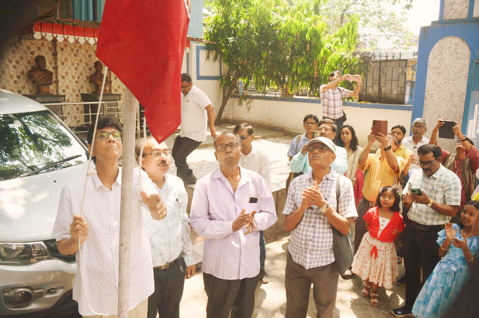 পশ্চিমবঙ্গ গণতান্ত্রিক লেখক শিল্পী সংঘ'র ৫৫ তম প্রতিষ্ঠা দিবস উদ্ যাপন উপলক্ষে ১৬ ফ্রেব্রুয়ারী ২০২৬ সকাল ১০টায় রাজ্য দপ্তরে সংগঠনের পতাকা উত্তোলন করলেন সভাপতি পবিত্র সরকার , পুষ্পার্ঘ্য অর্পণ করলেন সহ-সভাপতি অরিন্দম চট্টোপাধ্যায়,সাধারণ সম্পাদক রজত বন্দ্যোপাধ্যায়, অধ্যাপক শ্যামল চক্রবর্তী , চিত্র শিল্পী কমল আইচ , কোষাধ্যক্ষ শ্রীনিবাস ধর , সংস্কৃতিকর্মী শ্রীজিতা ভট্টাচার্য , কবি মনোজ দাস, কবি সজল শ্যাম সহ অন্যান্য সাংস্কৃতিক ব্যক্তিত্বরা।পন়ে দেয়।